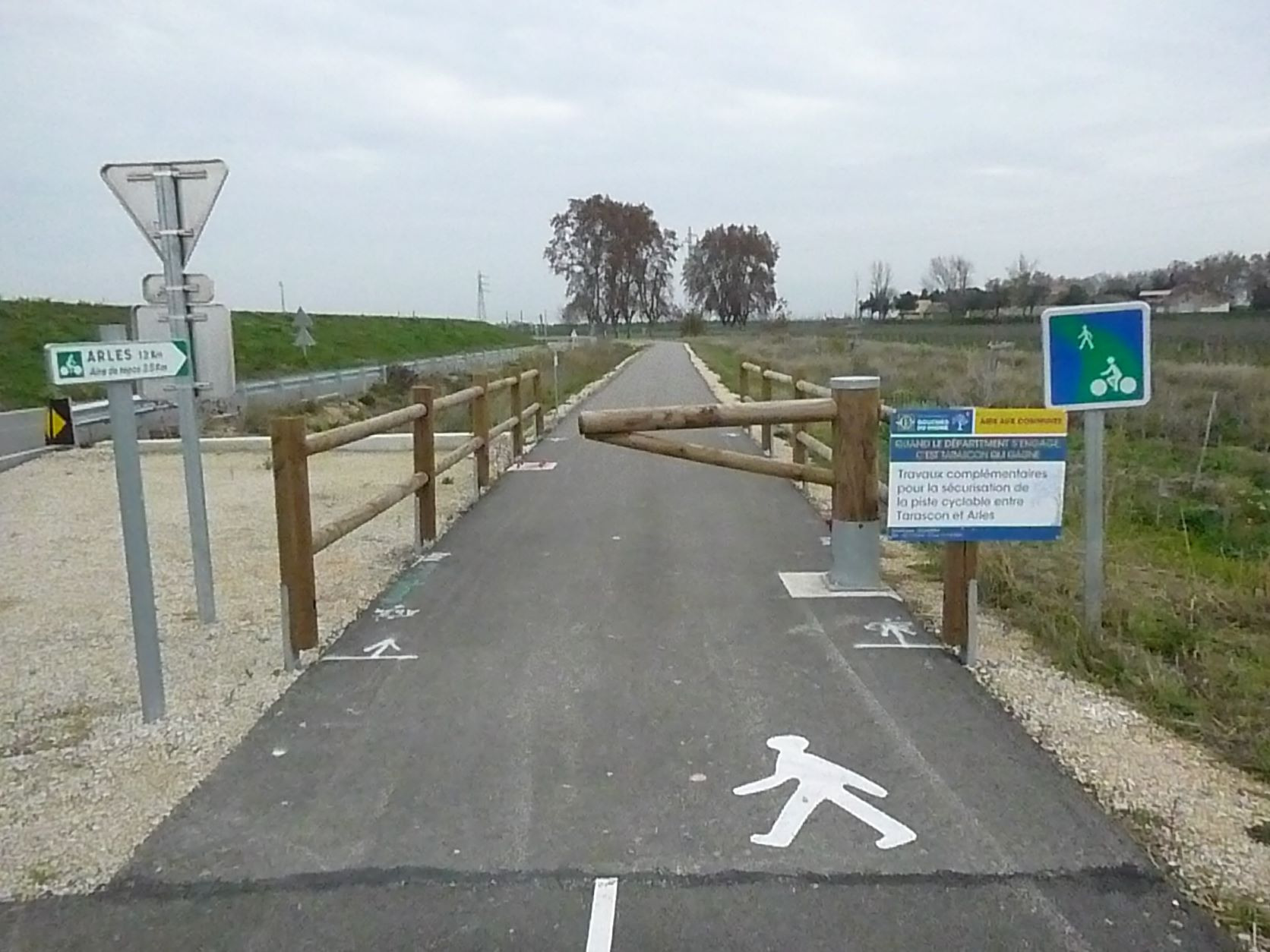 ×Cette voie verte de 8,2 km (revêtement lisse sur les premiers 7,7 km et rugueux sur 0,47 km) à l'écart de la circulation motorisée, dispose d'un jalonnement correct (signalisation directionnelle et de distance). La section au revêtement lisse permet la pratique de nombreuses activités: rollers, trottinettes, fauteuil roulant... Cependant, même si des prolongements sont prévus, cette voie verte n'est pas encore reliée à Tarascon-centre et l'EuroVelo 8 ni à Arles-centre et l'EuroVelo 17. Sur ce parcours, le confort et la sécurité des utilisateurs sont bien assurés. Des plantations ont été réalisées en bord de chaussée et une aire de repos a été aménagée.