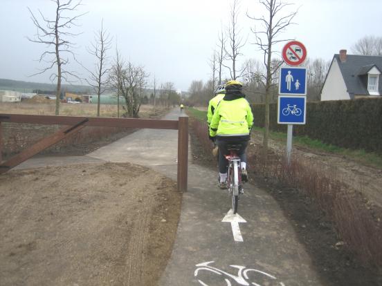 Les barrières d’accès et les traversées sont plutôt bien aménagées. Cependant le passage des tandems ou des vélos avec remorque-enfant devra être fait avec prudence car les passages sont parfois étroits, voire étroits et en chicane. Globalement les intersections sont correctes mais deux traversent une départementale en S sans visibilité.