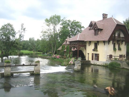A Fourges, le moulin à roue du 18ème au bord de l’Epte, transformé en auberge et ses dépendances.