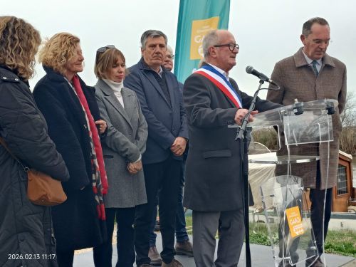 Les photos de l’inauguration ne concernent que le tronçon de 9,5 km entre le Pont d’Espeyran et Gallician. On note un décalage entre la description du projet « enrobé bicouche gravillonné ocre » sans référence à un complément d’enrobé liant lisse. Ce sera à surveiller.