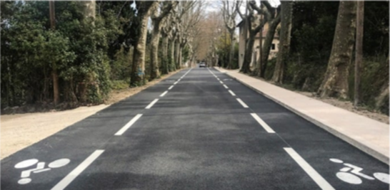 • Utilisation systématique, pour les bandes de rives, d’un revêtement distinct de celui de la voie centrale afin de bien différencier les espaces de circulation.