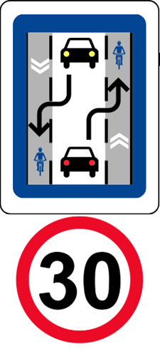 • Limitation de vitesse dans les CVCB (de 30km/h à 50km/h, exceptionnellement 70km/h) en fonction du profil de la route, du trafic et de la qualité de l’aménagement.