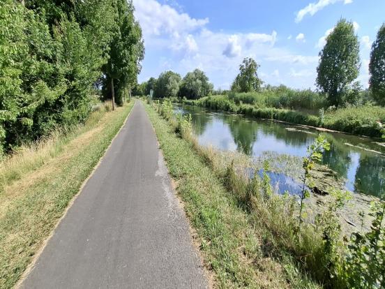 En suivant la vallée de la Marne, les paysages sont agréables, même si le chemin de halage, rectiligne, peut sembler ici monotone.