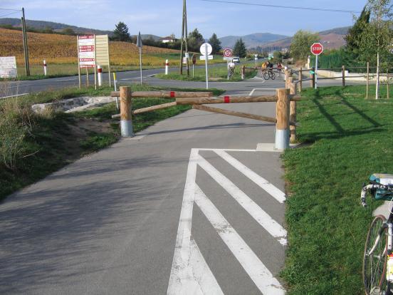 Depuis la suppression des épouvantables chicanes, cet aménagement ne présente plus qu'une lacune: l'absence de signalisation permettant de rejoindre facilement la Voie Verte depuis la gare SNCF de Belleville-sur-Saône très proche.