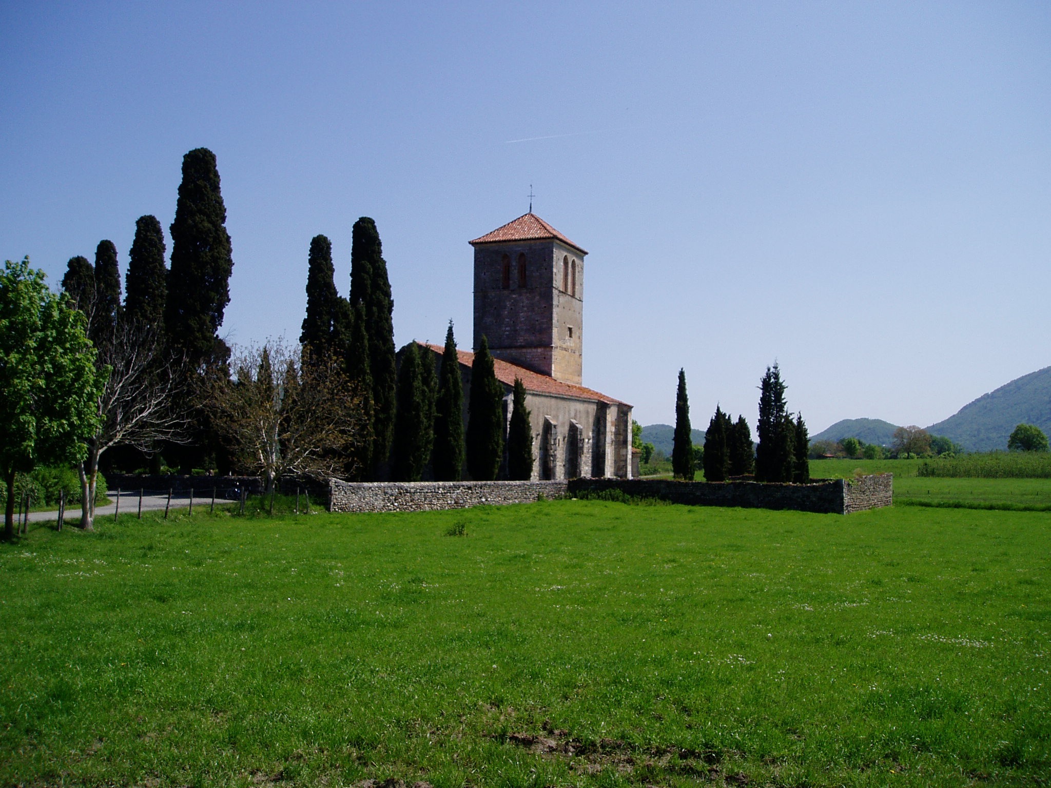 On remonte au hameau de Brocas et franchit le canal. Ensuite le chemin serpente avec des vues lointaines sur les Pyrénées, et passe près des ruines romaines de Valentine.
