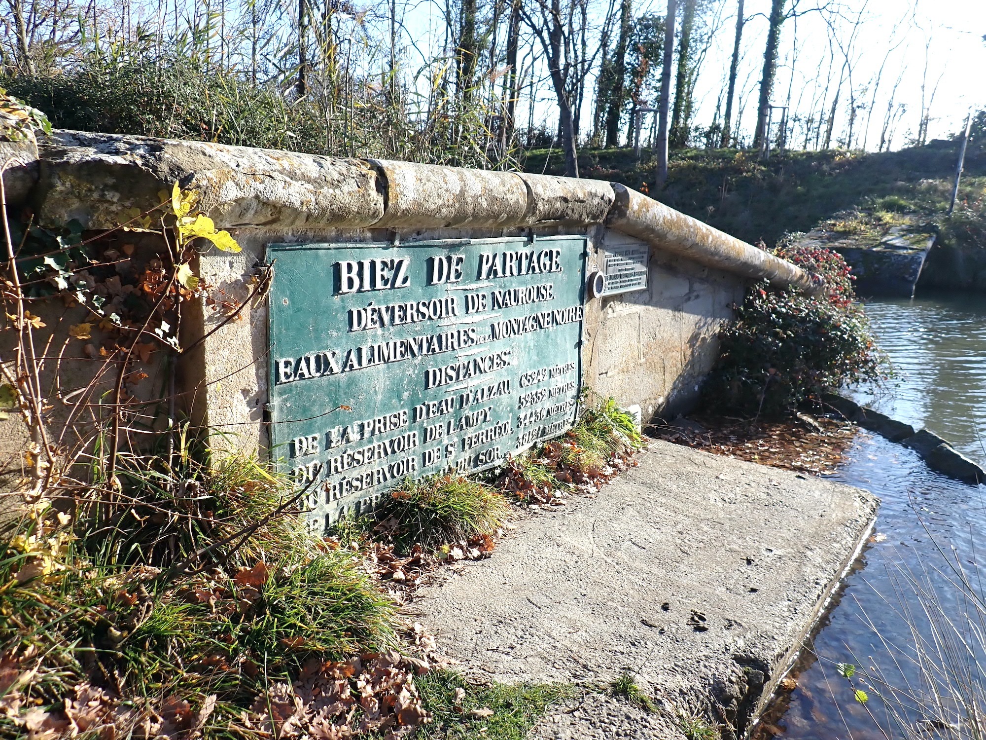 Suivre la V84. Passer devant la maison éclusière et rejoindre le Bassin octogonal de Naurouze avec l’allée royale (platanes), rigole circulaire que VNF est en train de curer pour améliorer le fonctionnement et économiser l’eau. Voir le site du Partage des Eaux (jonction Rigole-canal depuis 1681), la Minoterie et la stère à PP Riquet (accès à pied).