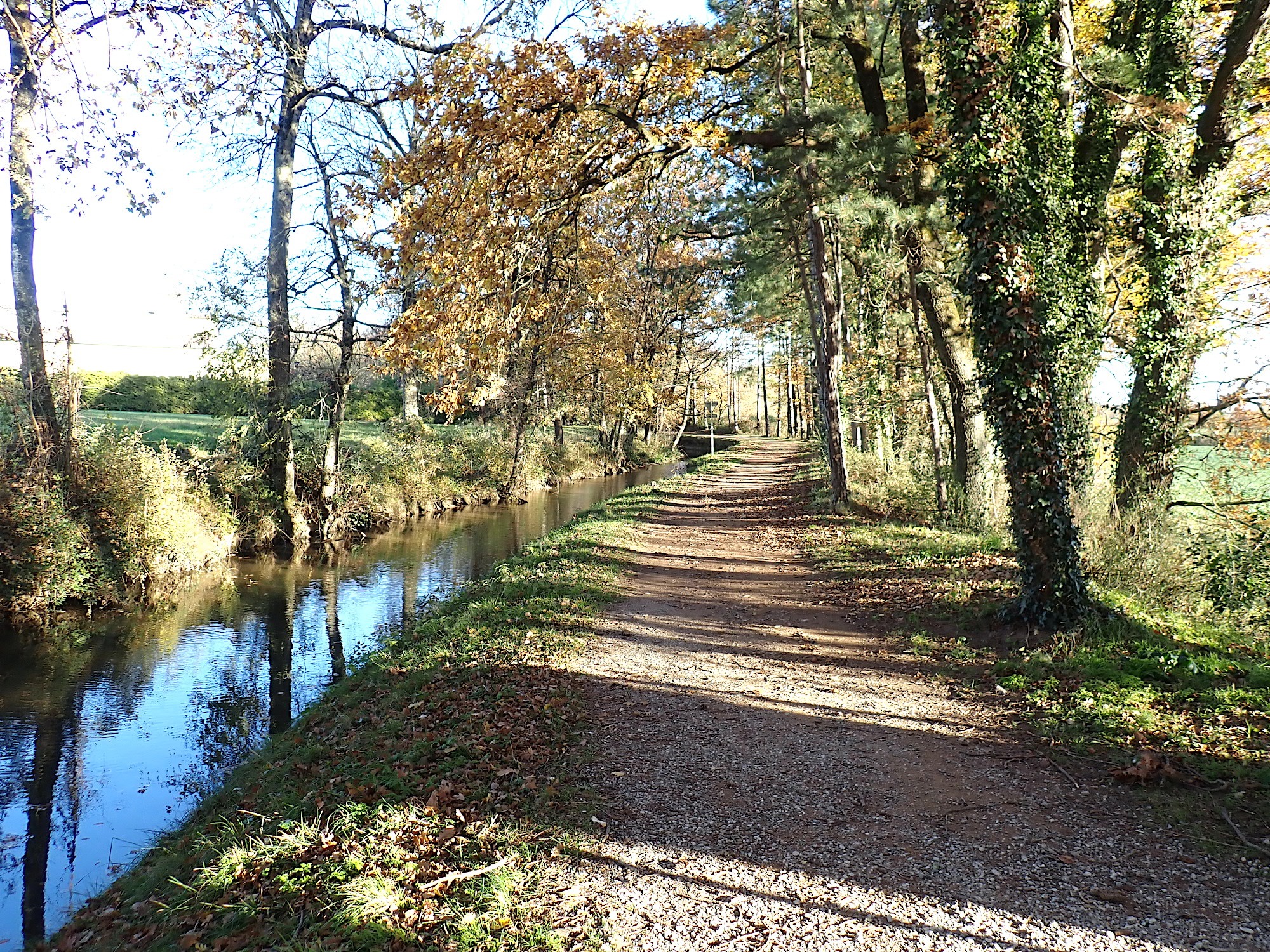 500m plus loin, prendre à gauche le chemin qui va rejoindre la Rigole au pont de Lamarque (Km 6,3).
