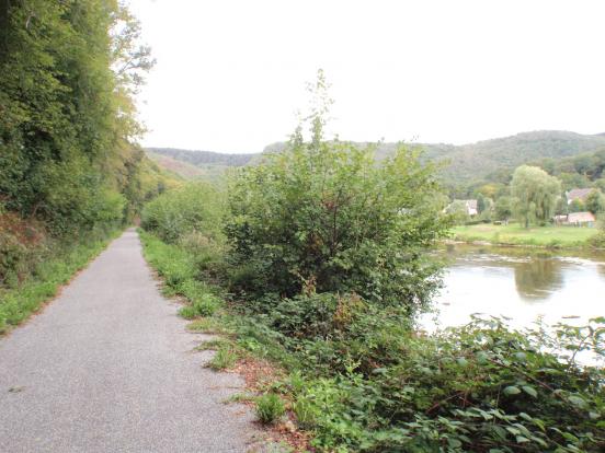 Début de la jonction avec la Voie Verte Trans-Ardennes au bord de la Meuse au pont D489 Monthermé