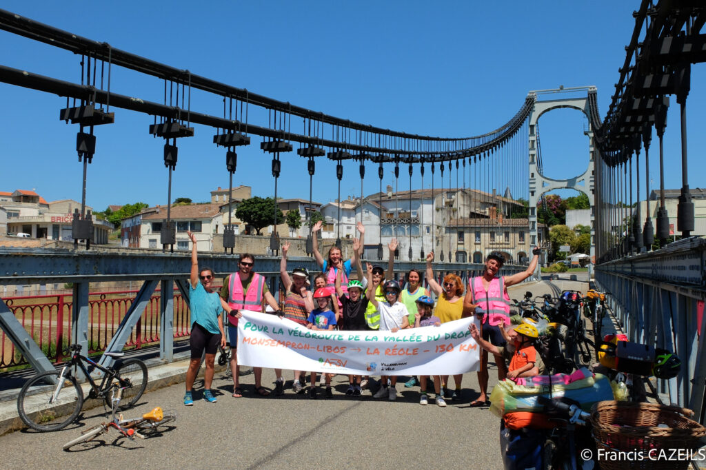 L’association Villeneuvois à vélo, délégation départementale de l’AF3V pour le Lot-et-Garonne, a organisé une randonnée familiale et militante sur la véloroute de la vallée du Dropt, entre Monsempron-Libos (47) et La Réole (33) du 7 au 10 juillet 2025, afin de découvrir les jolis paysages et lieux de la vallée du Dropt, et d’obtenir l’amélioration de son itinéraire et de ses services.