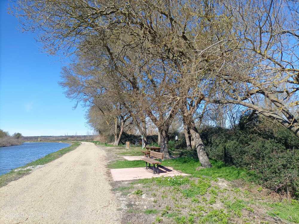 Une aire de repos est prévue tous les km avec au moins un banc. C’est souvent bien à l’ombre en dessous de grands arbres, des plantations supplémentaires ont été faites et seront continuées. Il y a un parking voiture à chaque pont d’Espeyran et de Franquevaux (en plus de ceux de St Gilles et Gallician). Les accès par les ponts à l’architecture particulièrement jolie, sont bien aménagés. La continuité de la voie verte en passage sous les ponts est bien conçue avec des chicanes métalliques d’un vert bien visible, ce sont les seuls passages où l’enrobé noir est lisse.