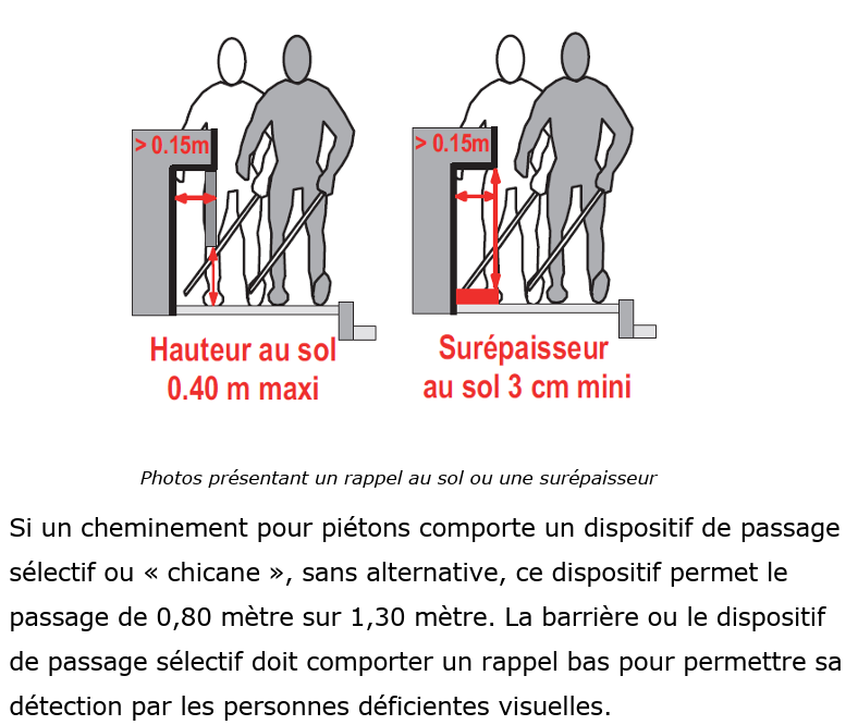 • Les barrières en bois constituent des entraves dangereuses (manque de contraste, pas de rappel au sol, angles vifs, etc.)